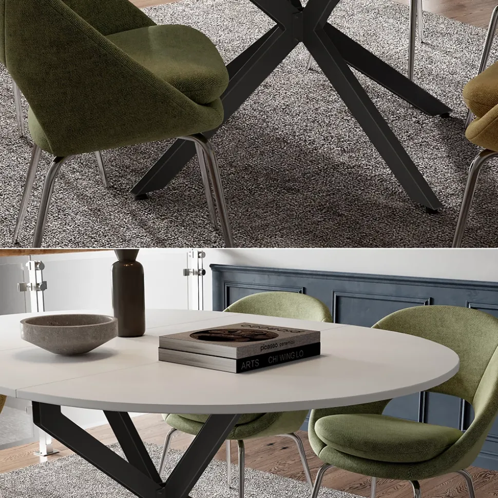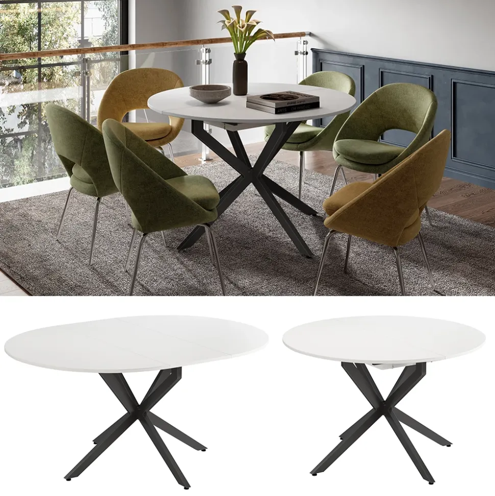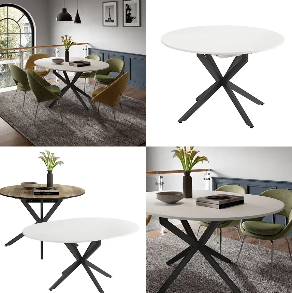 - Der ausziehbare Esszimmertisch eignet sich perfekt für Familientreffen und verfügt über eine runde Form, die ideal für das Esszimmer geeignet ist.