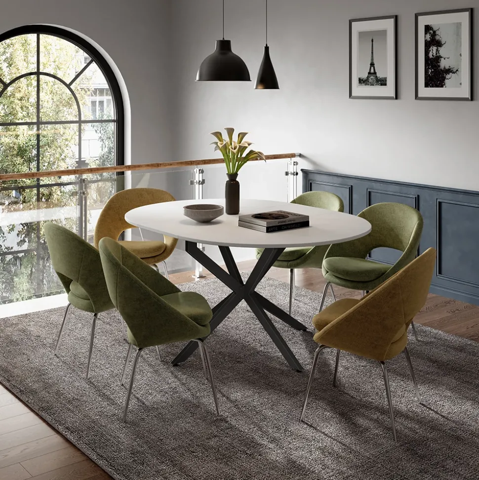 Der Esstisch Loyd ist der perfekte Begleiter für Familienessen und gesellige Runden mit Freunden. Durch seine runde Form und das moderne Design passt er perfekt in jedes Esszimmer und ist gut kombinierbar mit anderen Möbeln. Besonders praktisch ist die ausziehbare Funktion des Tisches, die ihn flexibel in der Länge macht – somit findet jeder Gast einen Platz. Ob für das morgendliche Frühstück oder das opulente Festessen – der Esstisch Loyd ist für jede Gelegenheit bestens geeignet und sorgt für eine entspannte Atmosphäre. Mit diesem Tisch wird jede Mahlzeit zu einem besonderen Erlebnis!
