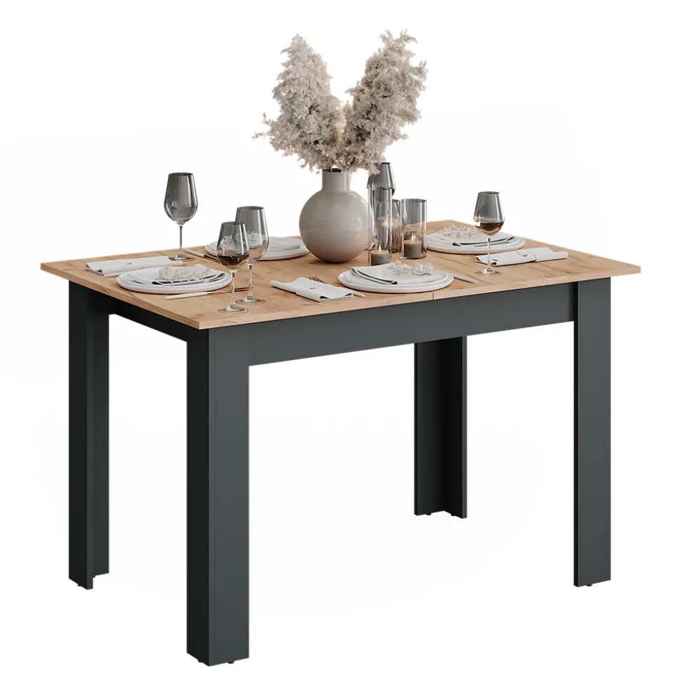 - MAßE: Der Küchentisch, ausziehbar, ist 120-160 cm breit, 80 cm tief und 76 cm hoch.