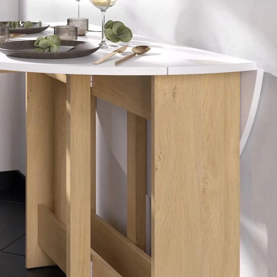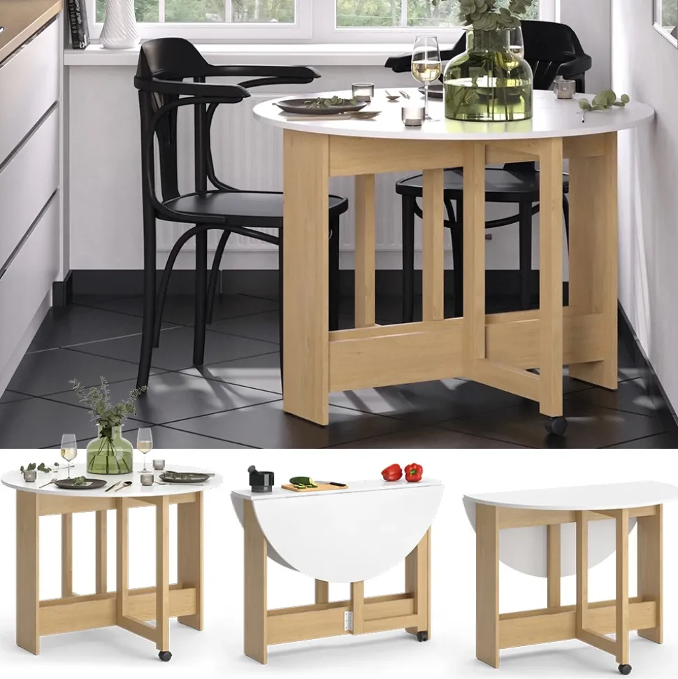 - MAßE: Der ausklappbare Küchentisch hat einen Ø von 100 cm und eine Höhe von 73 cm. Alle detaillierten Maße sind auf den Fotos angegeben.