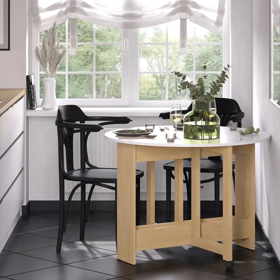 - Der ausziehbare Esszimmertisch verfügt über 2 Rollen und ist eine praktische Lösung für die Küche. Seine elegante Farbkombination verleiht dem Tisch eine ansprechende Optik.