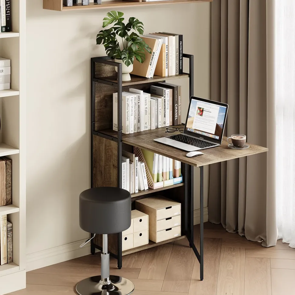- Der Homeoffice Schreibtisch verfügt über Regale und ein mehrstöckiges Aufbewahrungssystem, das eine praktische Lösung für zusätzlichen Stauraum bietet.