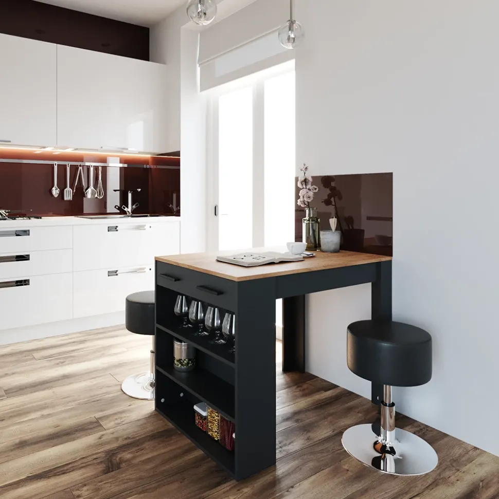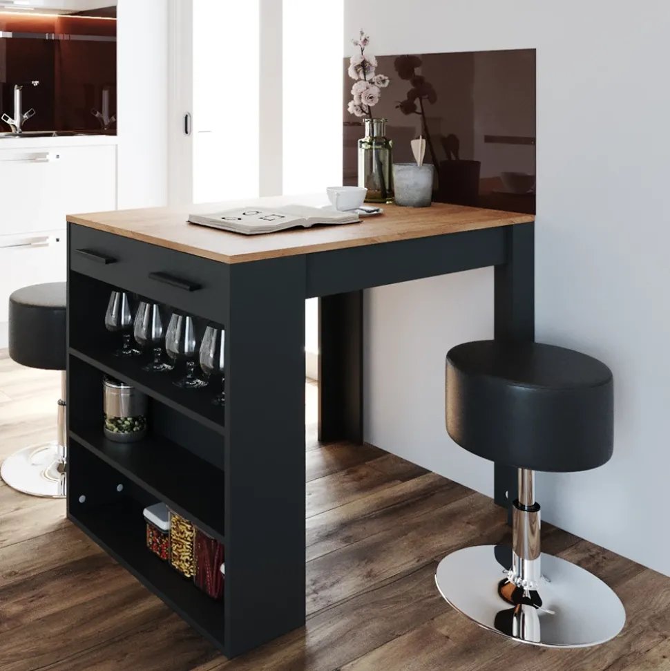 Das Esstisch-Set Repose ist die perfekte Lösung für kleine Küchen und Esszimmer. Mit seinem modernen Stil und funktionalen Design passt dieses Set ideal in jedes Zuhause. Der Küchentisch mit Barhocker, bietet ausreichend Platz zum Essen und geselligen Beisammensein. Die vielen Einlegeböden zur Aufbewahrung sorgen für Ordnung und Stil. Egal ob zum Frühstück, Mittagessen oder Abendessen – mit der Essgruppe wird jede Mahlzeit zu einem besonderen Erlebnis. Holen Sie sich jetzt dieses praktische Set und verwandeln Sie Ihre Küche in einen stylishen Treffpunkt für Familie und Freunde.