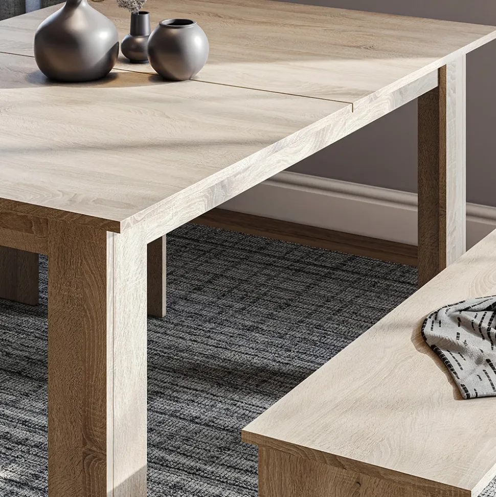 - LIEFERUMFANG: Esstisch Set, Montageanleitung, Montagematerial, 2x Bank (Dekoration nicht enthalten)