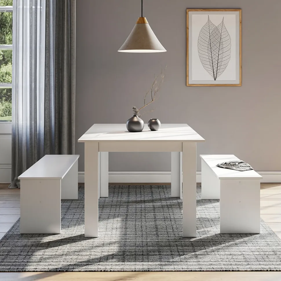 - LIEFERUMFANG: Esstisch Set mit 2x Bank, Montageanleitung, Montagematerial (Dekoration nicht enthalten)
