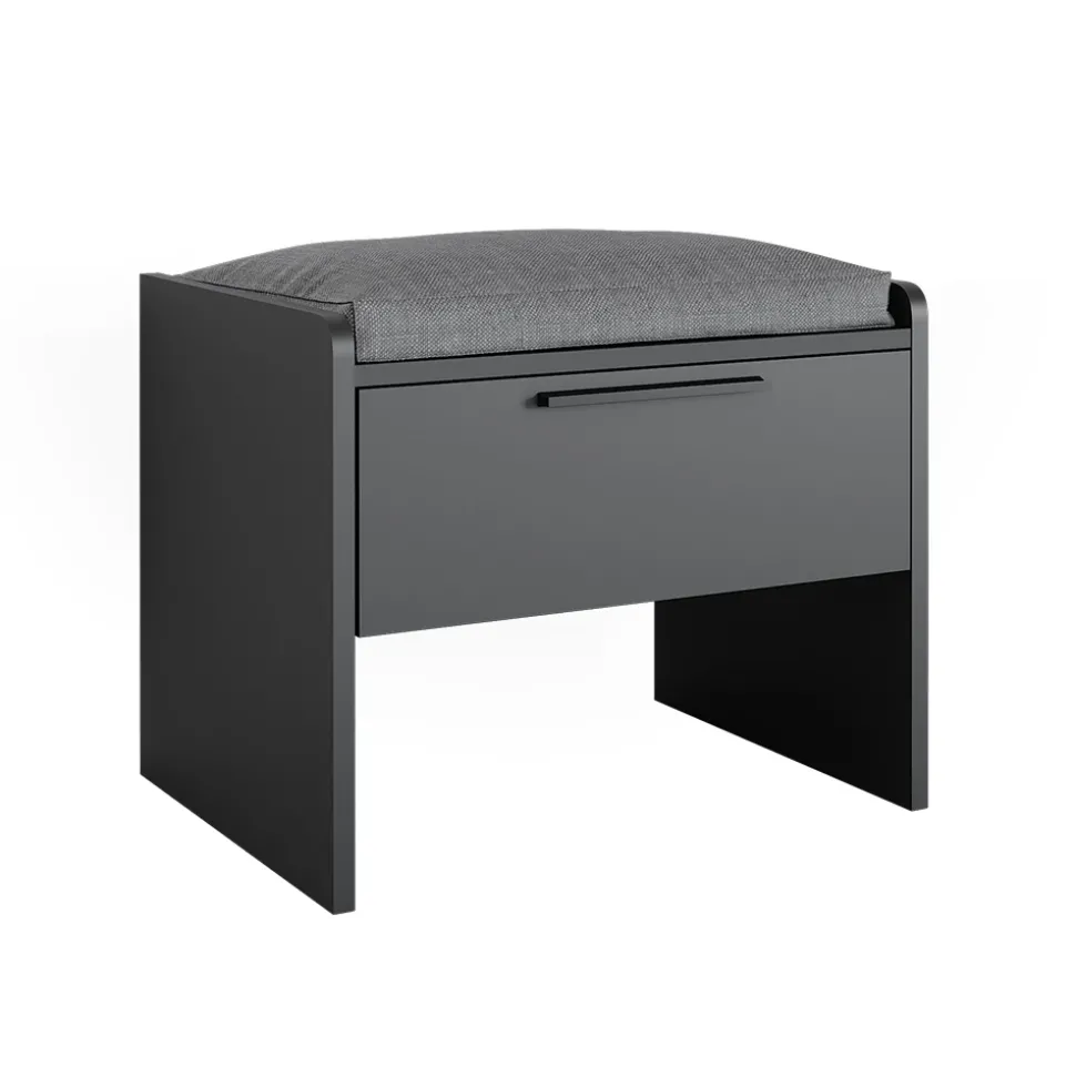 - MATERIAL: Der Sitzhocker mit Schublade besteht aus einer pflegeleichten 16 mm Spanplatte mit Melaminharzbeschichtung. Der Griff ist aus PVC gefertigt.