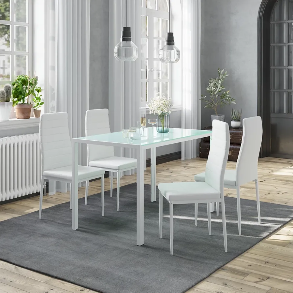 Dieses 4er-Set bietet Ihnen die perfekte Lösung für Ihre Sitzbedürfnisse. Dank der hohen Rückenlehne genießen Sie unvergleichlichen Sitzkomfort. Die bequeme Polsterung verspricht ein Sitzerlebnis der Extraklasse. Das moderne Design verleiht Ihrem Raum einen Hauch von Eleganz und Stil.