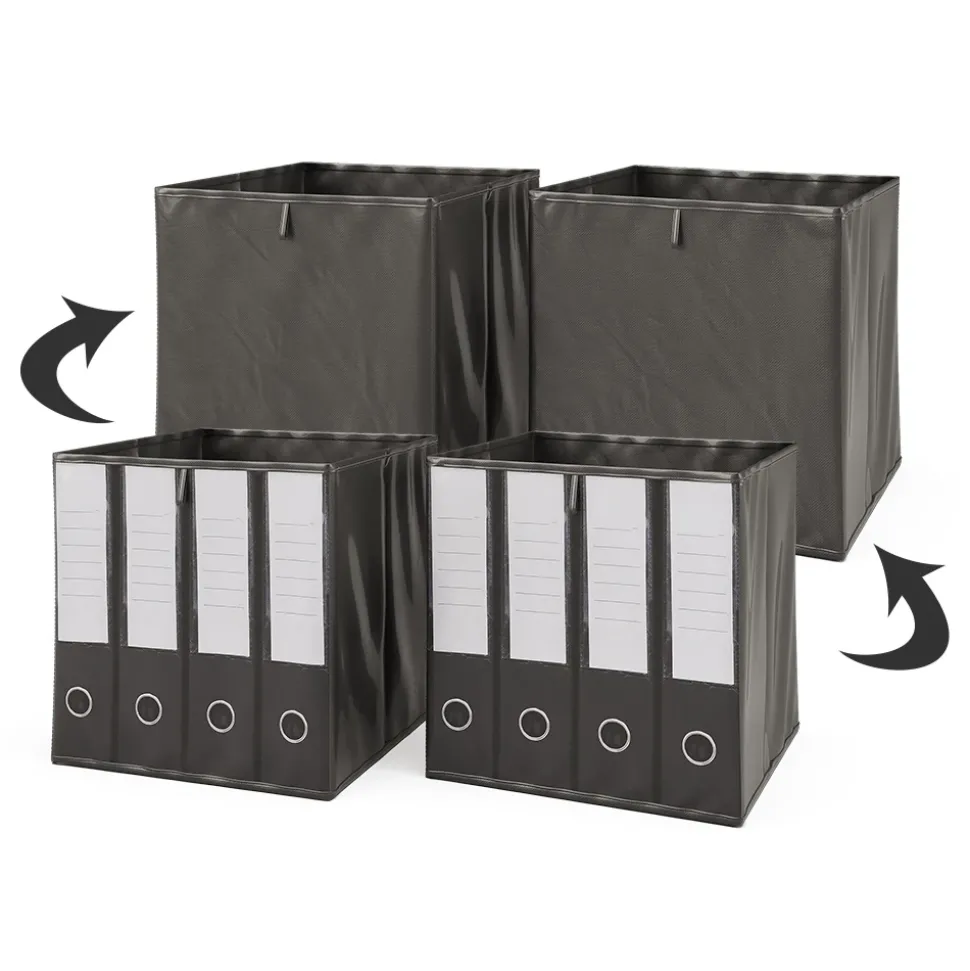 - MATERIAL: Die Faltboxen zur Aufbewahrung bestehen aus Hartkarton mit einem abwischbaren Kunststoffvlies