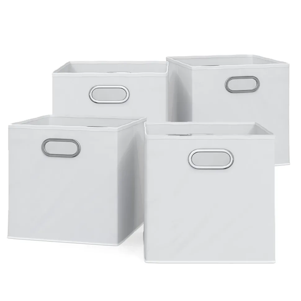 - Die weiße Regalbox ist einfach zu falten und zu entfalten. Durch die Öse kann sie leicht aus dem Regal gezogen werden.