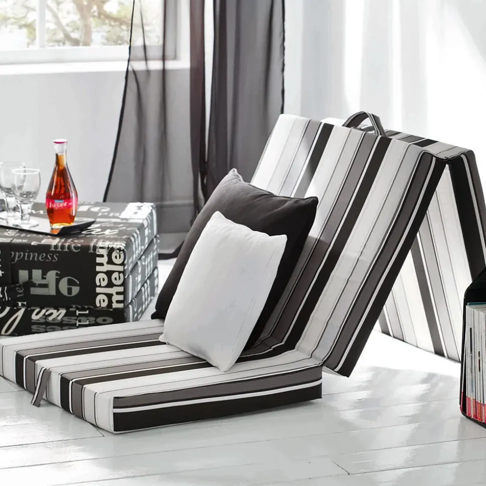 - Die Gästematratze ist eine vielseitige Option für Ihr Zuhause. Mit praktischen Tragegriffen, kann sie als bequeme Matratze oder Sitz verwendet werden.