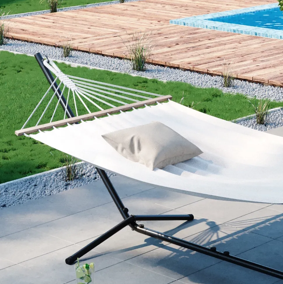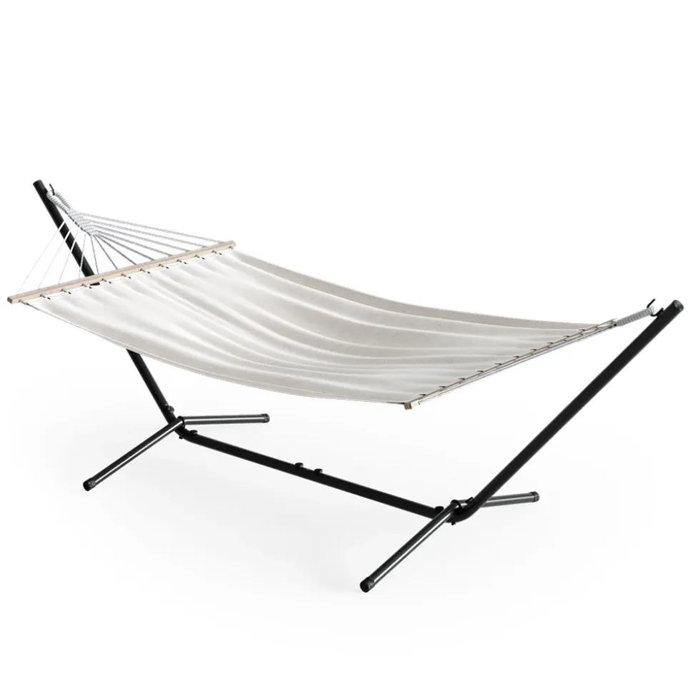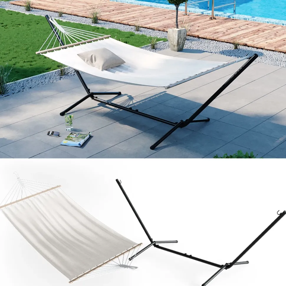- Das Hängebett unterstützt bis zu 185 kg und lässt sich schnell auf- und abbauen. Das rostbeständige Metall sorgt für eine langlebige Nutzung.