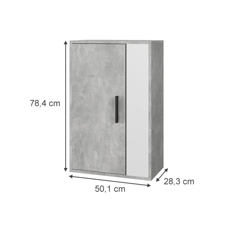 - MATERIAL: Der Schrank besteht aus einer pflegeleichten 16 mm Spanplatte, 16 mm. Der Griff ist aus Kunststoff gefertigt.