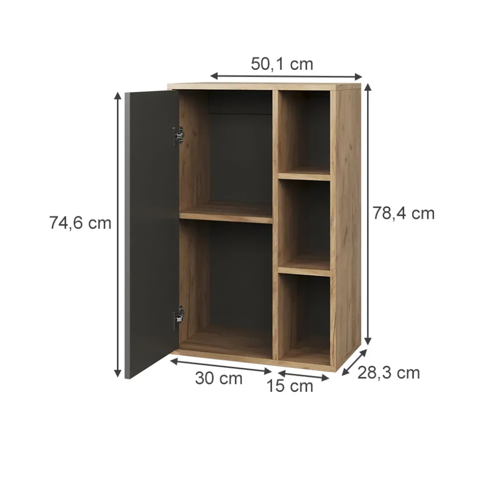 - MAßE: Das Bücherschrank hat folgende Maße: Tiefe: 28,3 cm, Breite: 50,1 cm, Höhe: 78,4 cm. Die detaillierten Maße sind auf den Fotos angegeben.