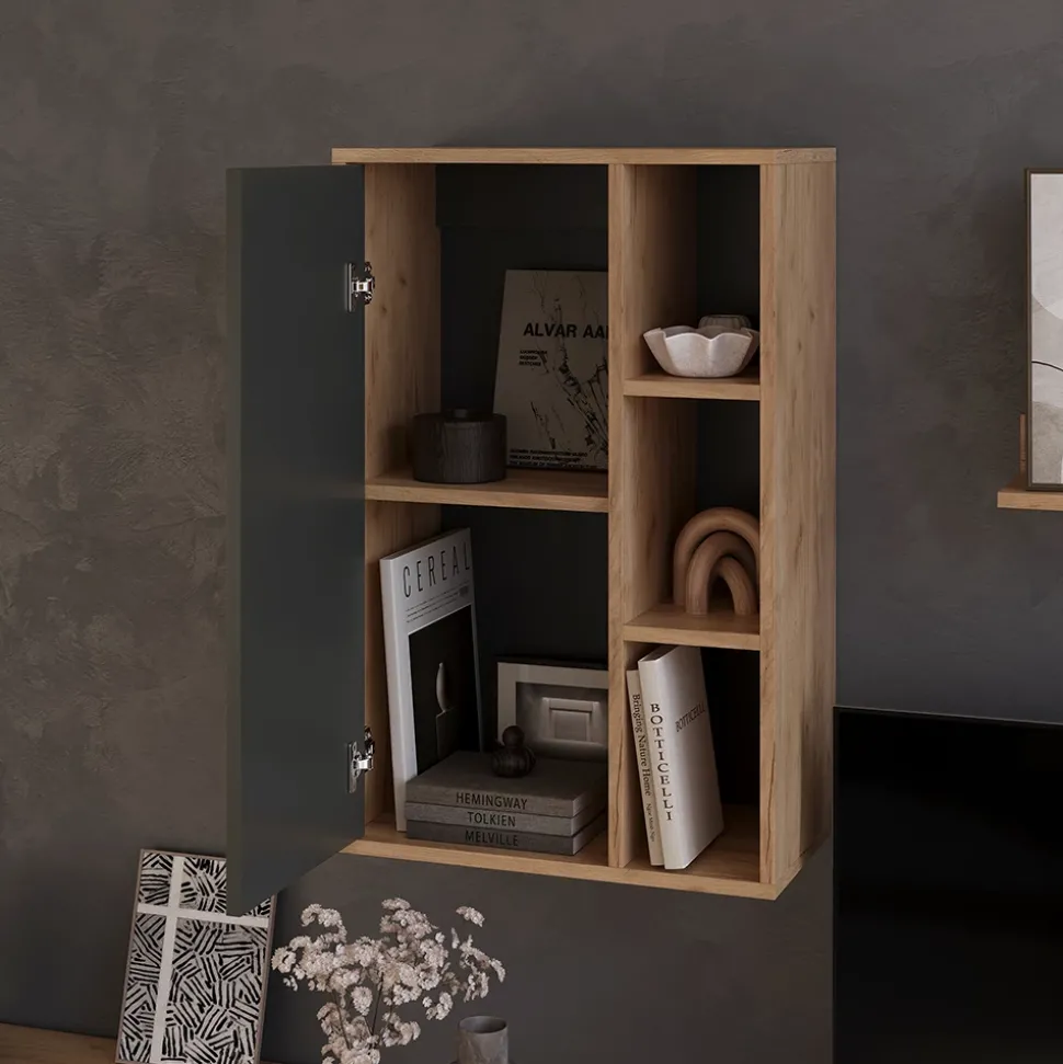 Träumen Sie von einem stilvollen und modernen Wohnzimmer, auch wenn Sie über begrenzten Platz verfügen? Der Hängeschrank Berno ist die perfekte Lösung für Sie! Dieses praktische Hängeboard bietet viel Stauraum für Ihre Bücher und Wohnaccessoires, während es gleichzeitig Ihren Raum größer und luftiger wirken lässt. Das hochwertige Design des Wandhängeschrankes verleiht Ihrem Zuhause einen edlen Touch, während die Push-to-open Funktion für ein müheloses Öffnen und Schließen sorgt. Genießen Sie die Schönheit und Funktionalität des Berno Hängeschrankes in Ihrem Zuhause!