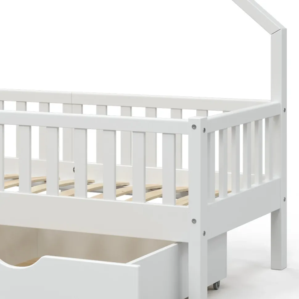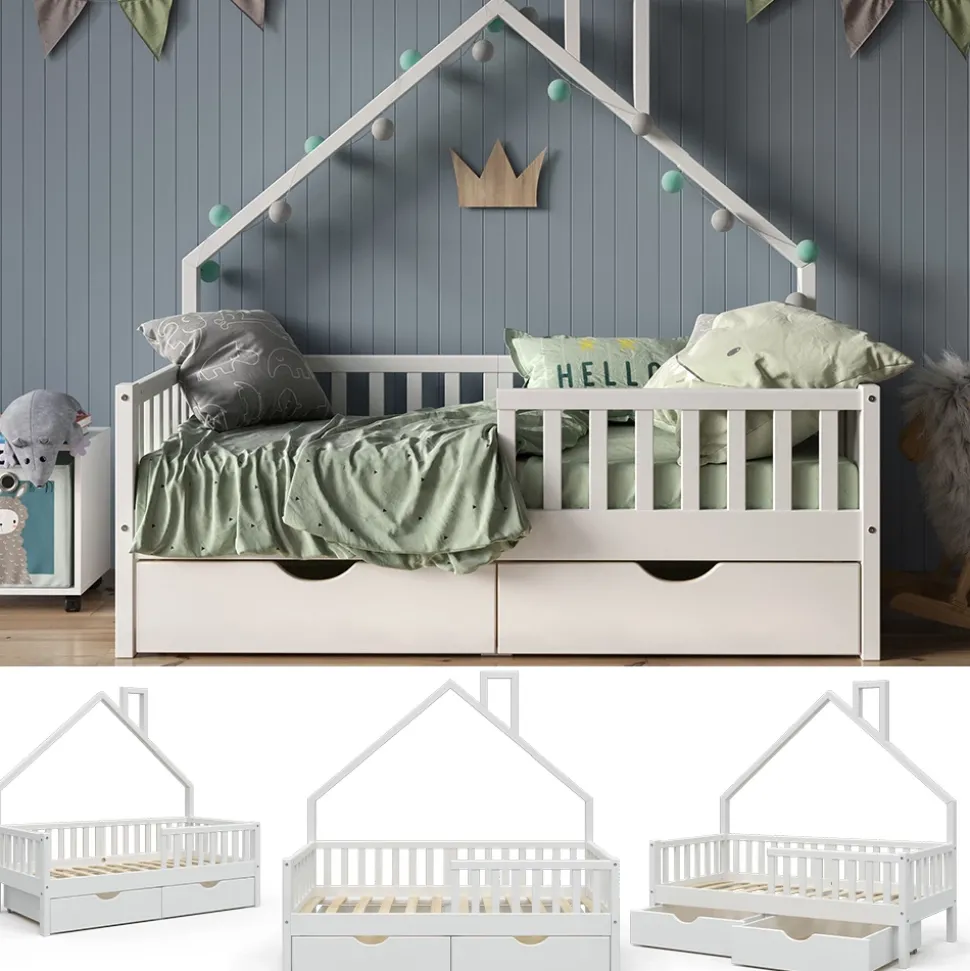 - LIEFERUMFANG: Hausbett, Montageanleitung, Montagematerial, 2x Schubladen. (Dekoration nicht enthalten)