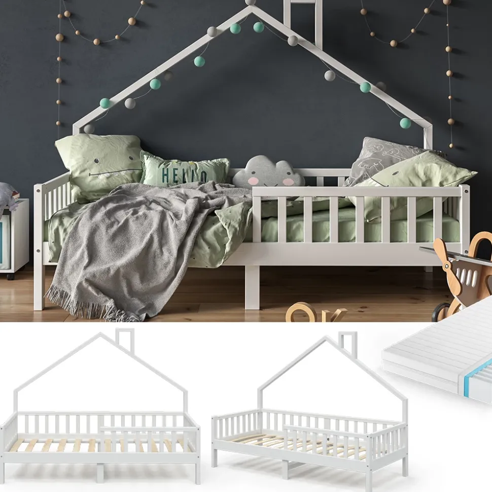 Das Hausbett Noemi mit Matratze ist das Highlight im Kinderzimmer und bietet den Kleinen ein einzigartiges Bett- und Spiel-Erlebnis. Das Holzbett für Kinderzimmer ist nicht nur ein gemütlicher Schlafplatz, sondern auch ein Ort, an dem sich Kinder kreativ austoben können und ihre Fantasie entfalten dürfen. Somit wird das Kinderzimmer zum Abenteuerspielplatz und die Kleinen können sich voll und ganz entfalten. Das Hausbett ist in hoher Qualität erhältlich und kann individuell veredelt werden. Holen Sie sich das Noemi Hausbett und schenken Sie Ihrem Kind ein unvergessliches spielerisches Erlebnis.