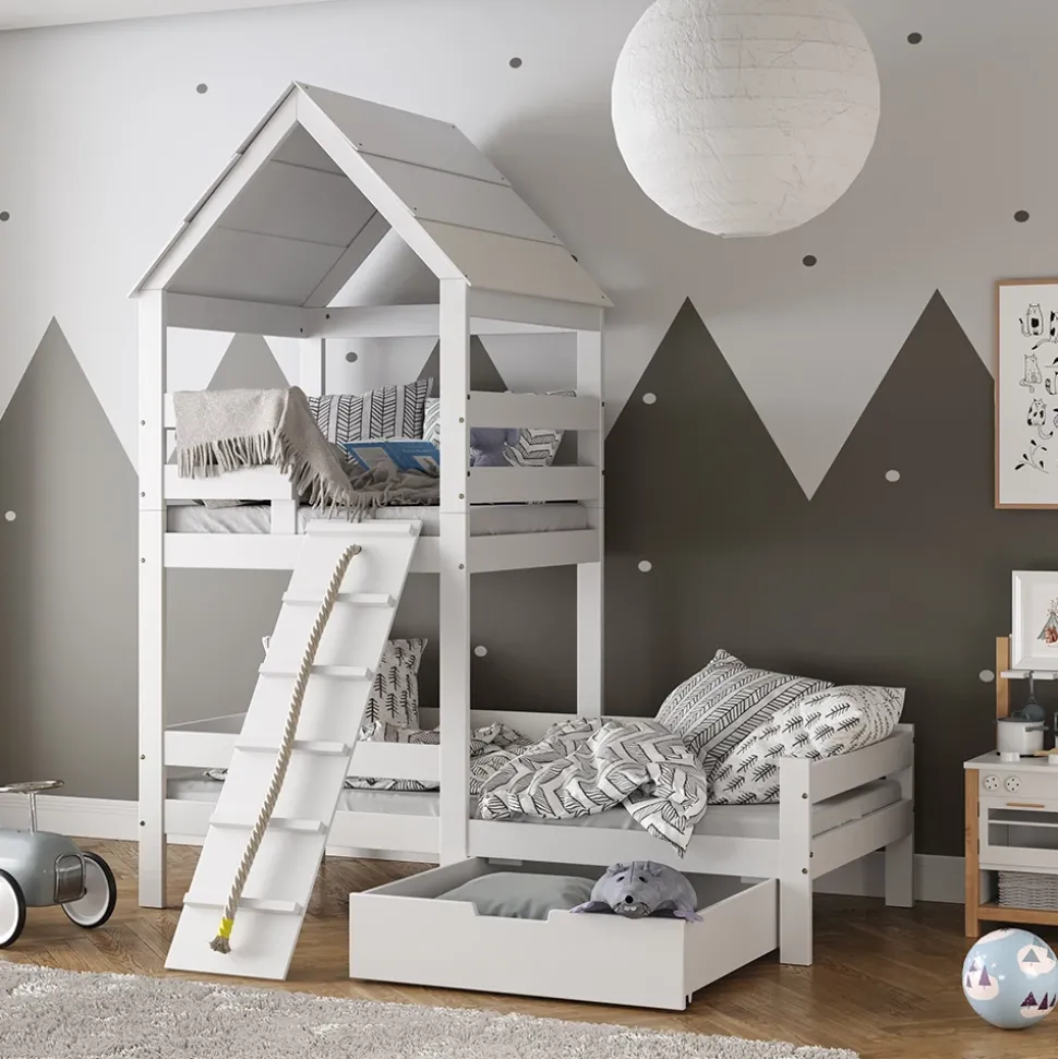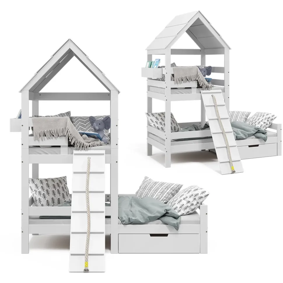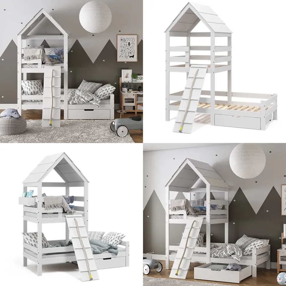 - LIEFERUMFANG: Hausbett, Montageanleitung, Montagematerial, 1x Schublade. (Dekoration nicht enthalten)