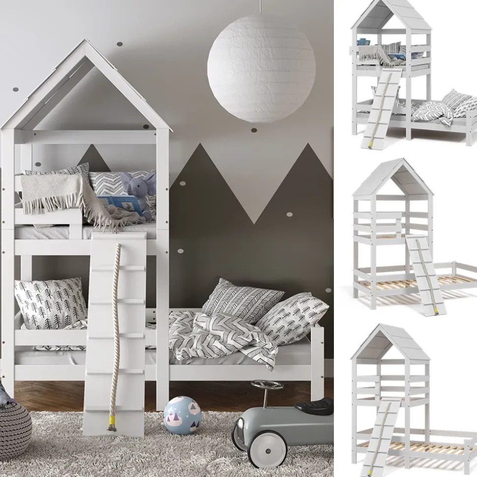 Die Möbelserie „Teddy“ bietet farbenfrohe Kinderbetten im Hausstil mit einem Turm. Mit verschiedenen Konfigurationsmöglichkeiten können Sie ein einzigartiges und spielerisches Ambiente im Kinderzimmer schaffen.