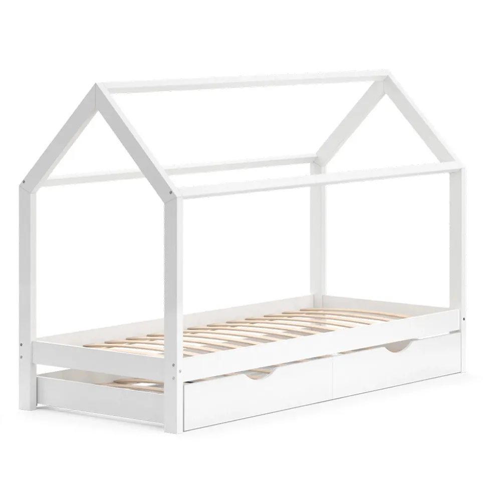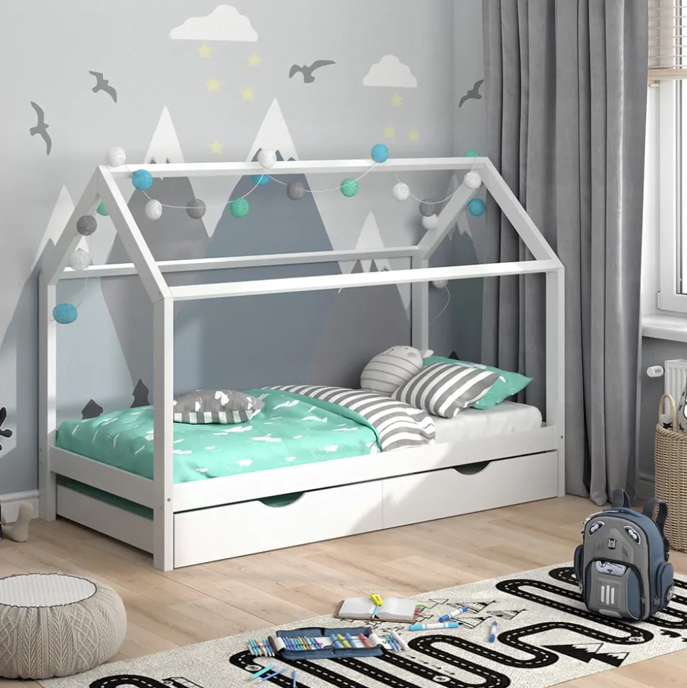 - LIEFERUMFANG: Hausbett, Montageanleitung, Montagematerial, 2x Schubladen.