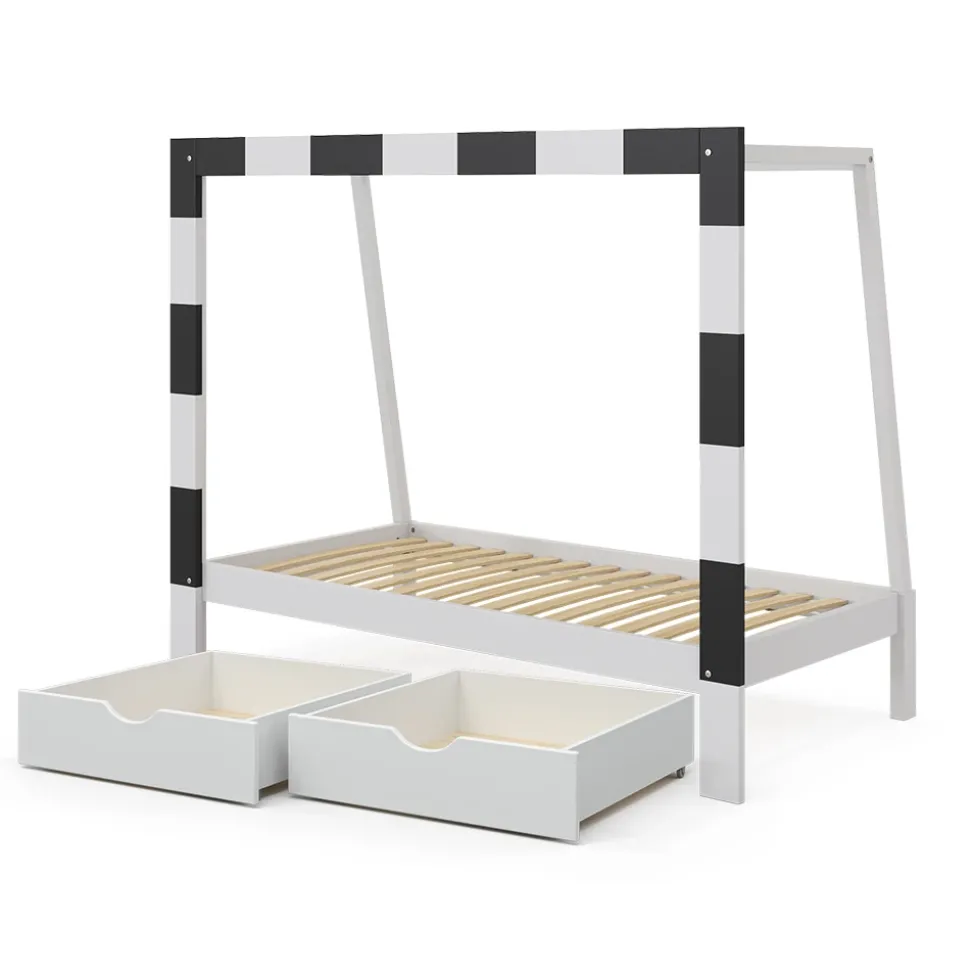 - LIEFERUMFANG: Kinderbett (ohne Netz), 2x Schublade, Montageanleitung, Montagematerial