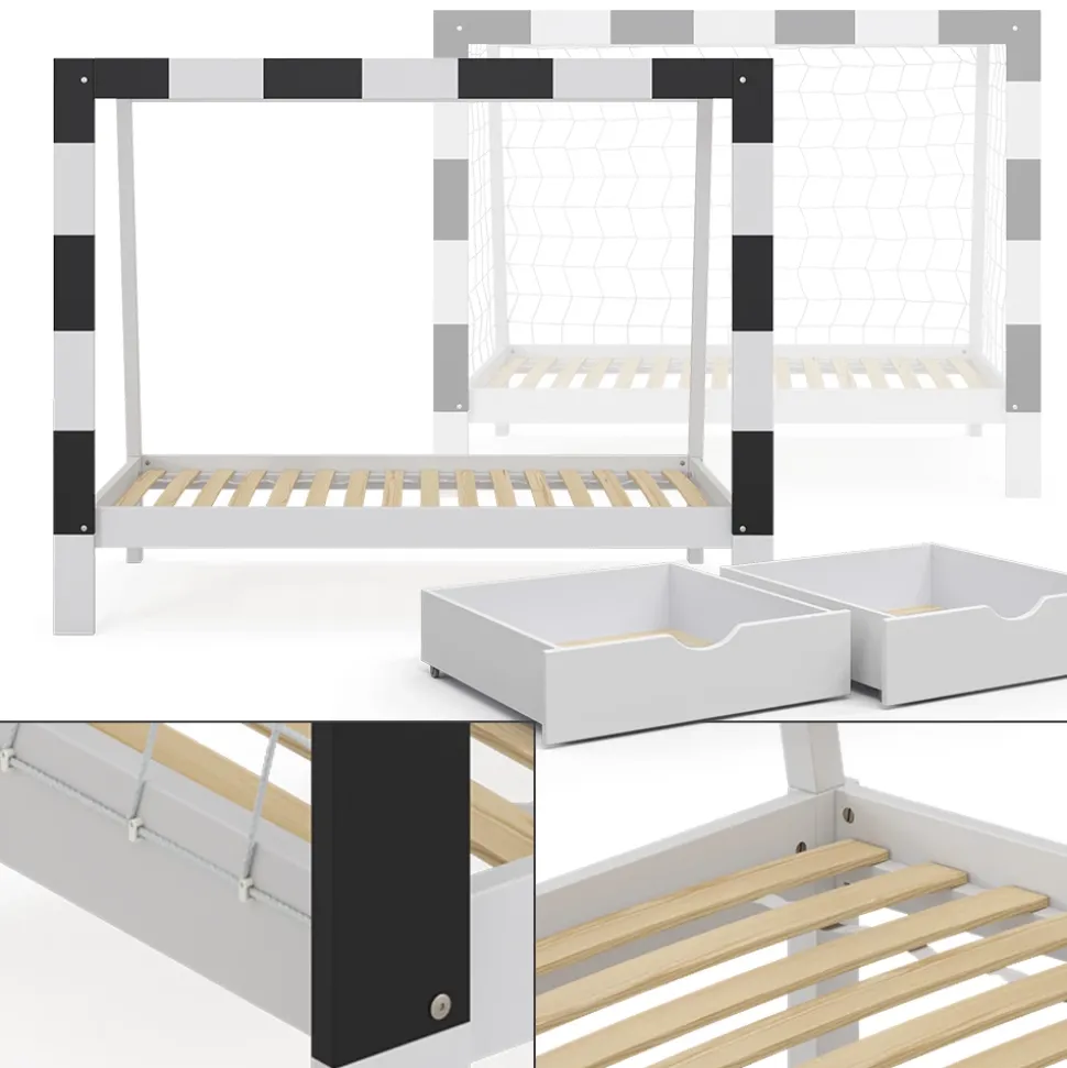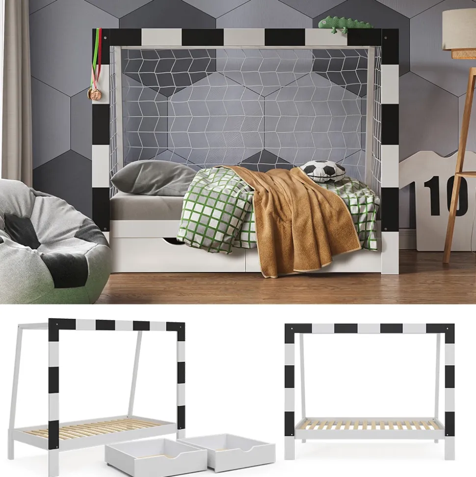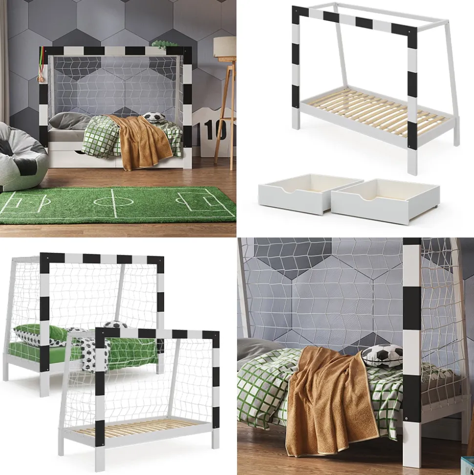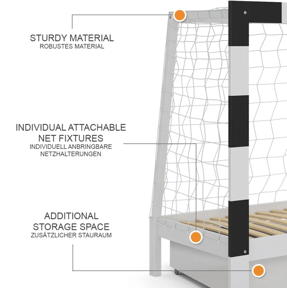 - Das Holzbett Fußballtor ist die perfekte Wahl für jeden kleinen Fußballfan! Mit seinem einzigartigen und unterhaltsamen Design ist es ein absolutes Must-have in jeder Wohnung.