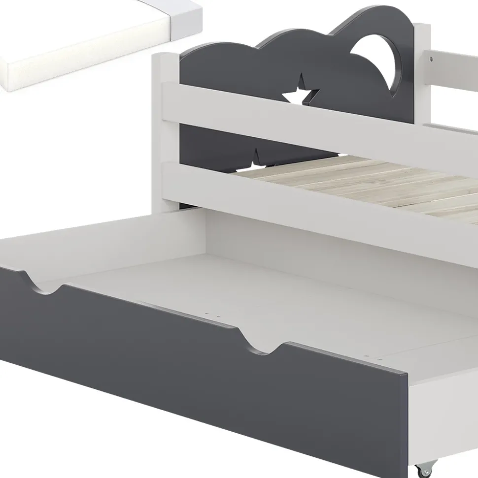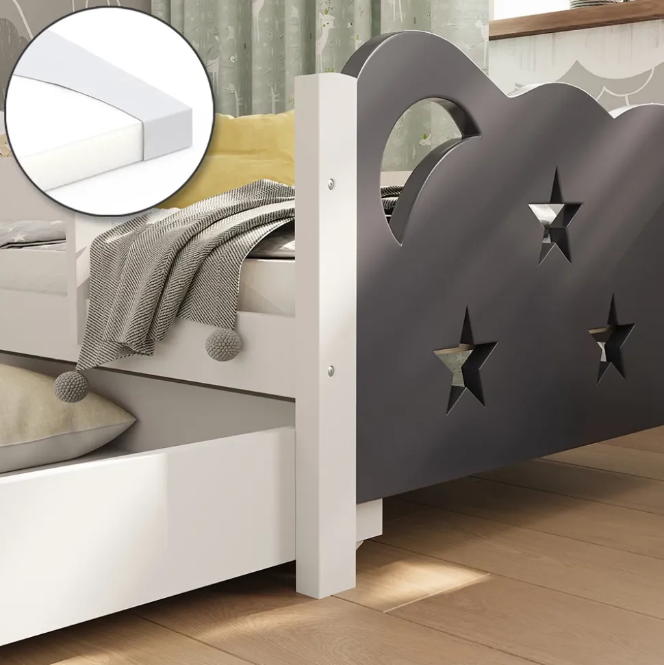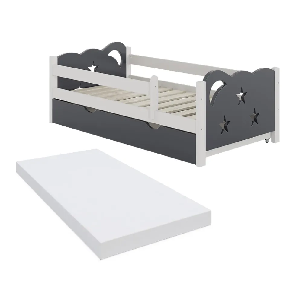 - LIEFERUMFANG: Kinderbett, Schublade, Matratze, Montageanleitung, Montagematerial.