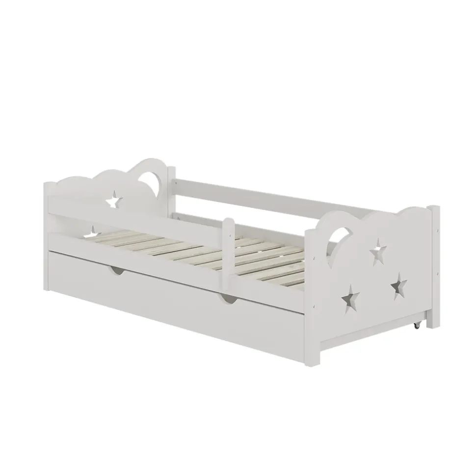 Das am Sternenhimmel angelehnte Design lädt zum Träumen ein und ist optisch ein richtiger Hingucker. Durch die Seitenbretter ist Ihr Kind abgesichert.
