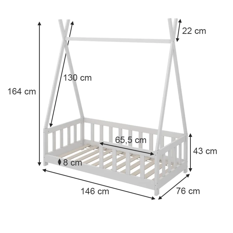 - MATERIAL: Das Tipi-Bett besteht aus pflegeleichtem bambus.