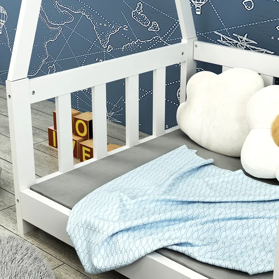 - Die Zaunumrandung vom Spielbett dient als Rausfallschutz für Kissen und Decken und hilft dabei Nachts nicht aus dem Bett zu fallen.