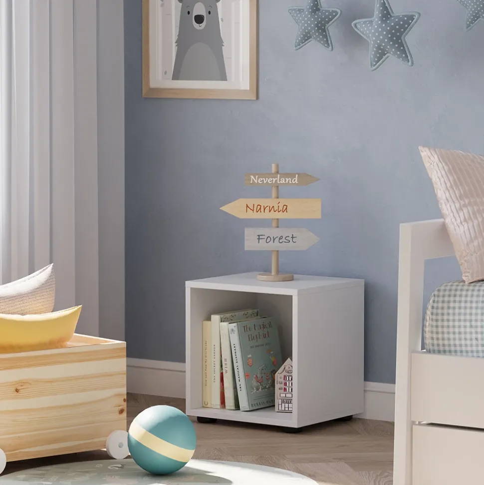- MATERIAL: Das Kinderregal besteht aus pflegeleichter Spanplatte, 16 mm.