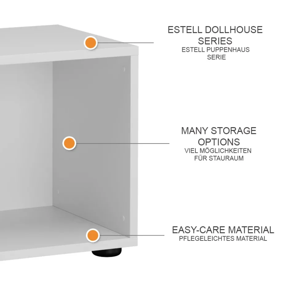 - Mit dem Spielzeugschrank für Aufbewahrungsboxen „Estell“ treffen Eltern eine gute Entscheidung für eine optimale Organisation im Kinderzimmer.