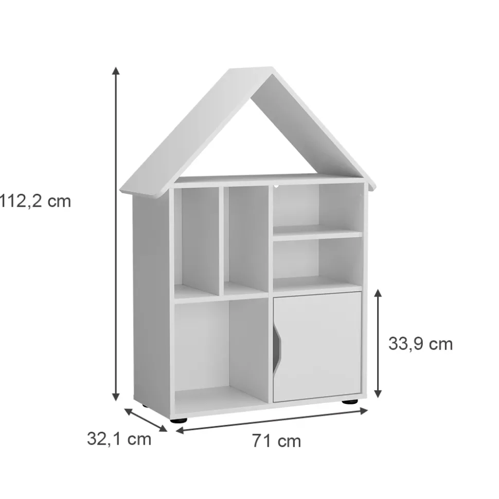 - MAßE: Das Bücherregal für Kinder hat eine Tiefe von 32,1 cm, eine Breite von 71 cm und eine Höhe von 112,2 cm.