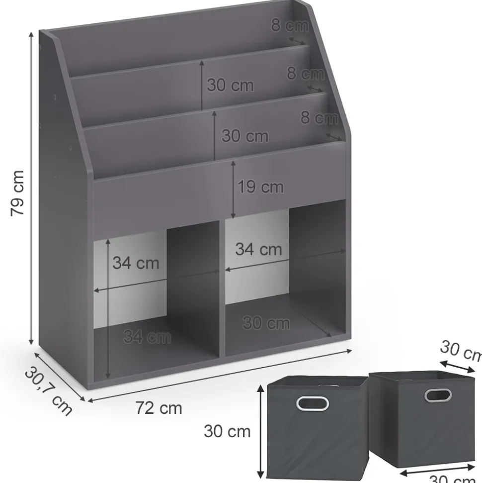 - Das Spielzeugregal für Faltboxen hat 3 Einlegeböden, 2 Boxfächer und bietet eine bequeme Aufbewahrungsmöglichkeit für Bücher und Spielzeug.