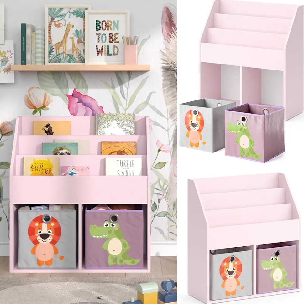 - Lernen Sie das Vicco Kinderbücherregal Luigi kennen: Ein charmantes Kinderzimmerregal inklusive Faltboxen, um Spielzeug und Bücher ordentlich zu verstauen. In zartem Rosa – ideal für Mädchen.