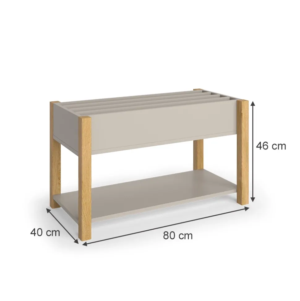 - MAßE: Das Bücherregal hat eine Tiefe von 40 cm, eine Breite von 80 cm und eine Höhe von 46 cm.