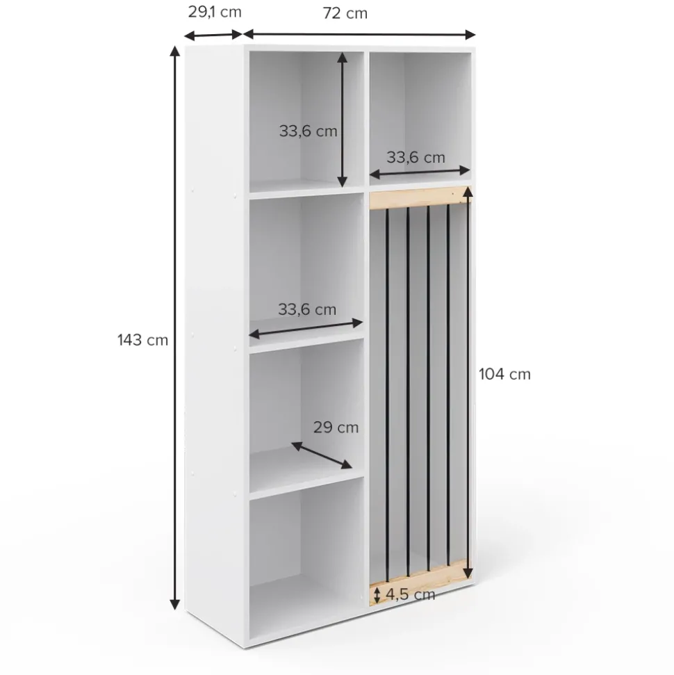 - MAßE: Das Bücherregal für Kinder hat eine Breite von 72 cm, eine Höhe von 143 cm und eine Tiefe von 29 cm. Alle detaillierten Größen sind auf den Fotos angegeben.