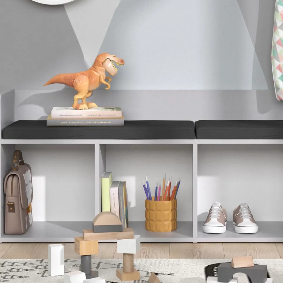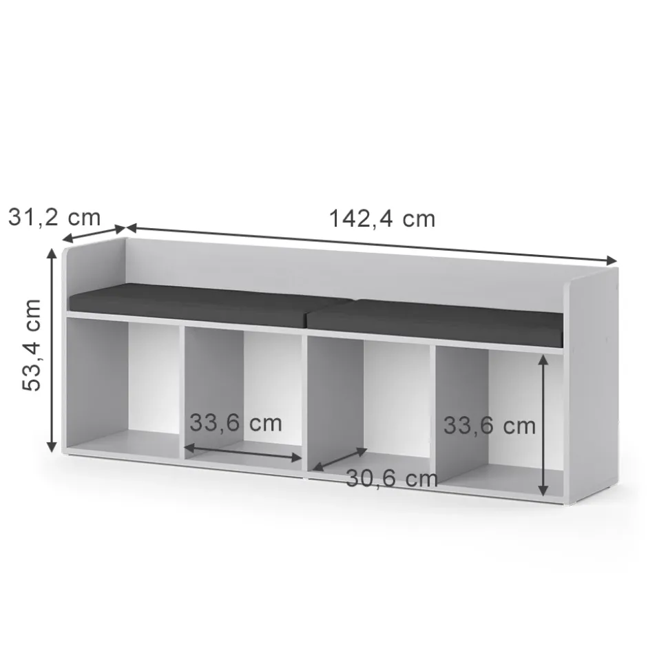 - Das Regal bietet ausreichend Platz, in dem Sie die Lieblingsstücke Ihrer Kinder oder unsere Faltboxen platzieren können. Die zusätzliche Sitzmöglichkeit wird Sie begeistern.