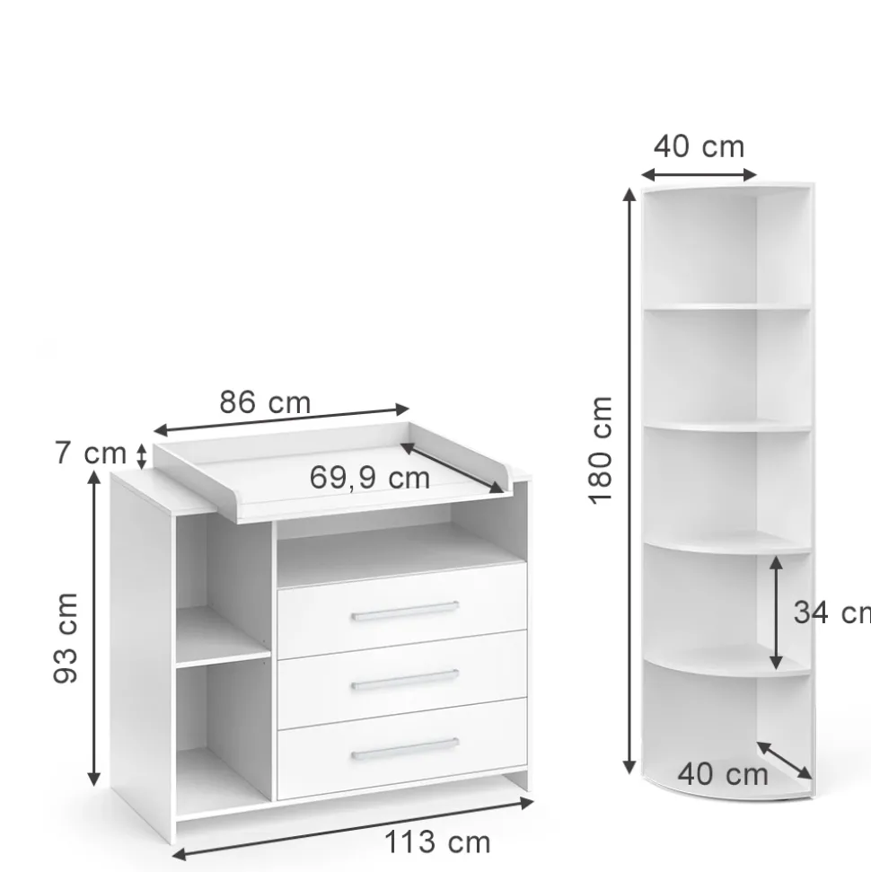 - MAßE: Das Babymöbel Set hat 2 Teile. Die detaillierten Größen sind auf den Fotos angegeben.