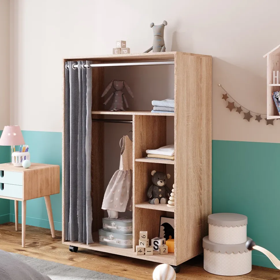- Dank der leichtgängigen Rollen können Sie den Kleiderschrank jederzeit einfach an einen gewünschten Ort im Kinderzimmer stellen.