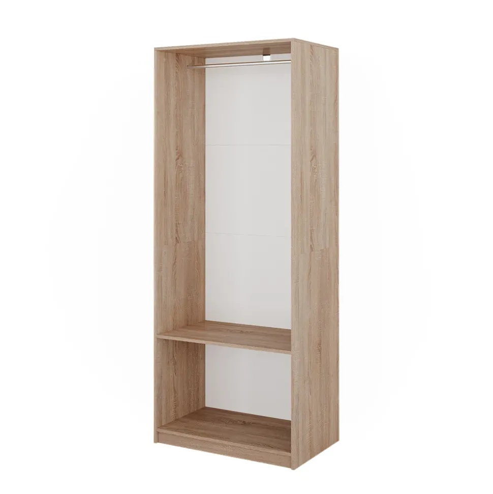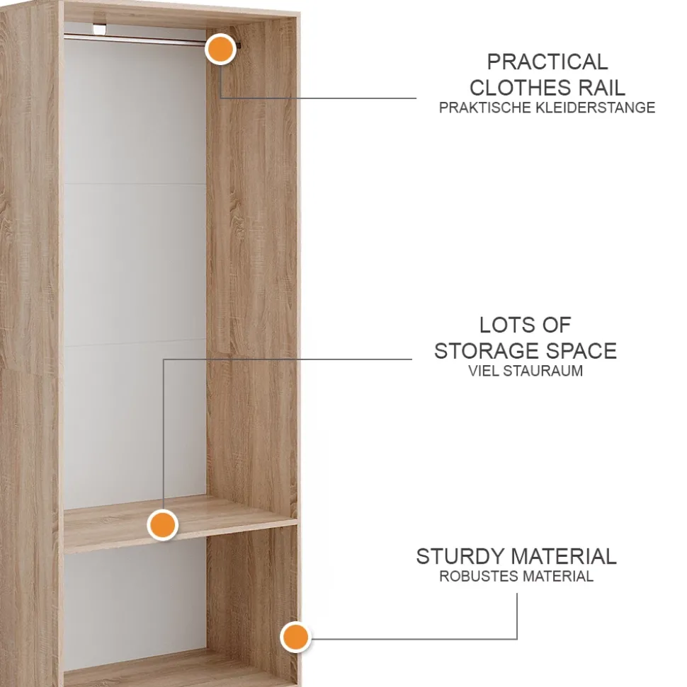 - MATERIAL: Der Kleiderschrank besteht aus pflegeleichter, melaminharzbeschichteter 16 mm Spanplatte. Die Kleiderstange ist aus Metall.