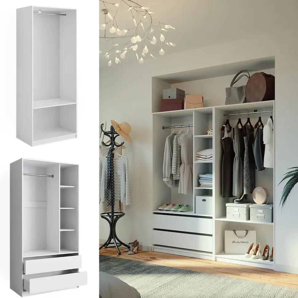 Elmo ist das perfekte Kleiderschrank-Set für jeden Raum. Mit dessen vielseitigen Einsatzmöglichkeiten als Mehrzweckschrank- oder Garderobenschrank-Set ist es nicht nur im Schlafzimmer einsetzbar, sondern auch als Wohnzimmerschrank-Kombi. Das offene Design mit Schubladen macht Elmo zu einem echten Hingucker. Es kann zudem problemlos mit anderen Möbelstücken kombiniert werden und passt sich somit jedem Einrichtungsstil an. Gönnen Sie sich jetzt den Luxus vom Elmo Möbel-Set und genießen Sie Ordnung und mehr Platz in Ihrem Zuhause.