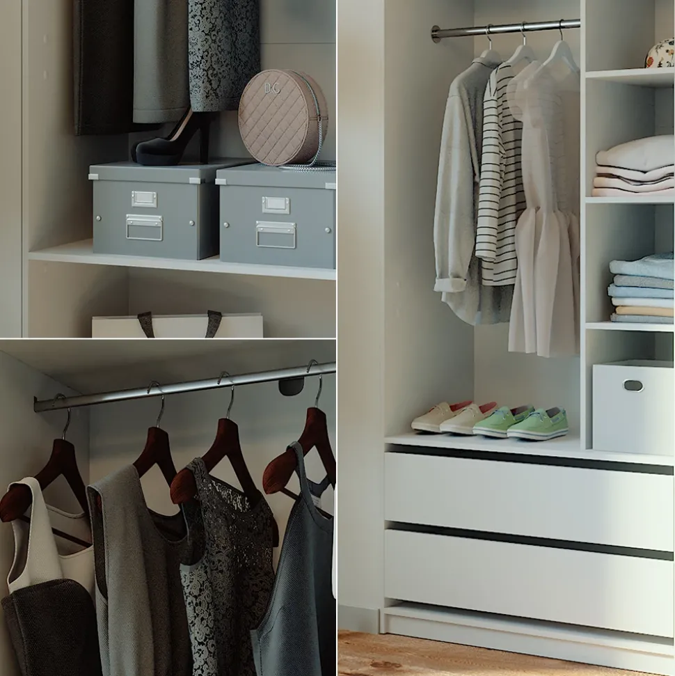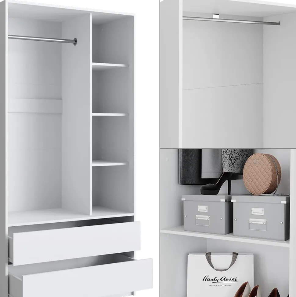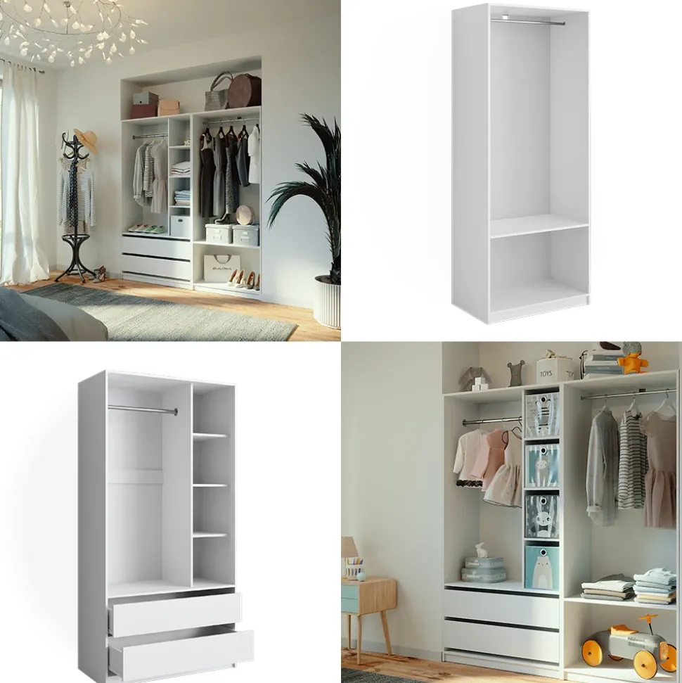 - MATERIAL: Die Kleiderschränke bestehen aus pflegeleichter, melaminharzbeschichteter 16 mm Spanplatte. Die Kleiderstangen sind aus Metall.