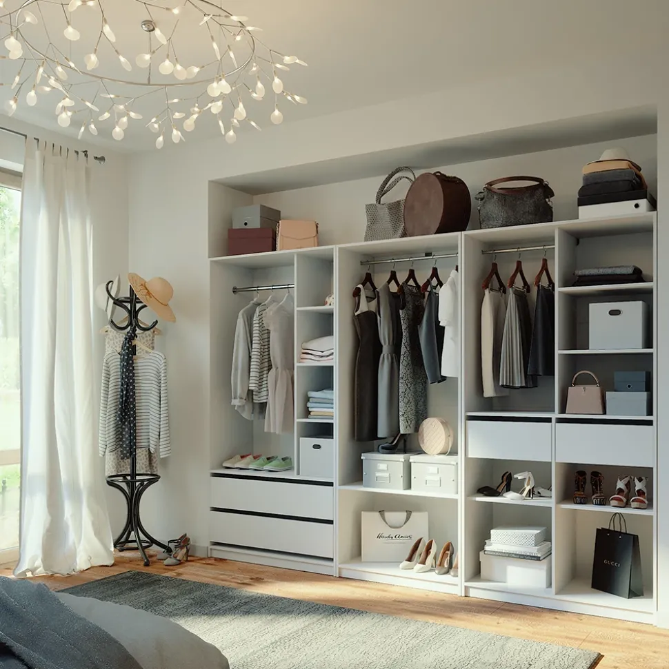 Elmo ist das perfekte Kleiderschrank-Set für jeden Raum. Mit dessen vielseitigen Einsatzmöglichkeiten als Mehrzweckschrank- oder Garderobenschrank-Set ist es nicht nur im Schlafzimmer einsetzbar, sondern auch als Wohnzimmerschrank-Kombi. Das offene Design mit Schubladen macht Elmo zu einem echten Hingucker. Es kann zudem problemlos mit anderen Möbelstücken kombiniert werden und passt sich somit jedem Einrichtungsstil an. Gönnen Sie sich jetzt den Luxus vom Elmo Möbel-Set und genießen Sie Ordnung und mehr Platz in Ihrem Zuhause.