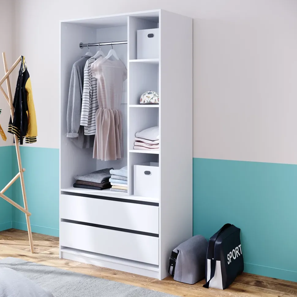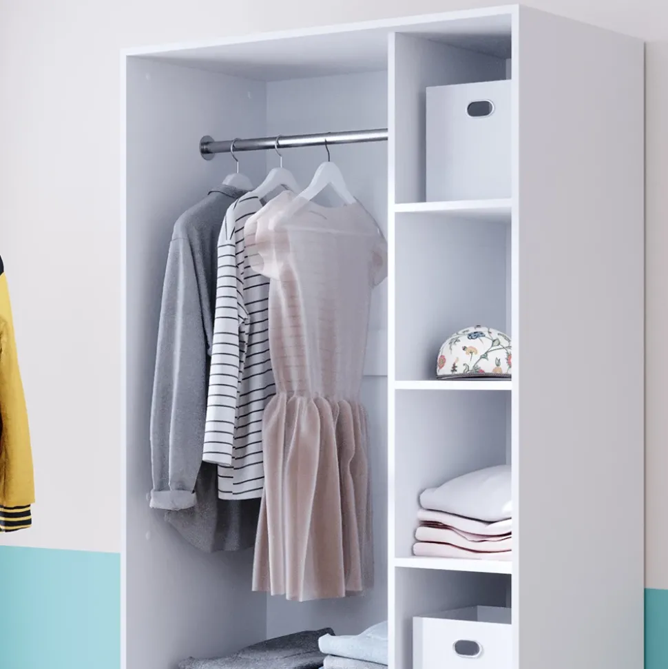 - Entdecken Sie den Vicco Kleiderschrank Elmo mit offener Aufbewahrung, Schubfächer, Kleiderstange und Regale – perfekt für Schlaf- oder Kinderzimmer. Praktische Garderobe und stilvolle Einrichtung.