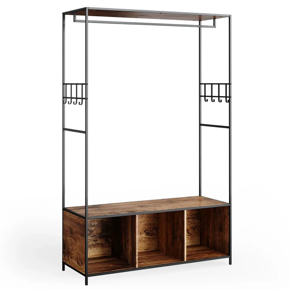 Der Kleiderschrank Fyrk ist mehr als nur ein Stauraum für Ihre Kleidung. Er verbindet Funktionalität mit einem trendigen Design im loft-Stil und eignet sich perfekt für Ihr Schlafzimmer oder Wohnzimmer. Die Flügeltüren bieten reichlich Platz für Ihre Garderobe und der Schrank kann sogar als Wohnzimmerschrank oder als praktischer Garderobenschrank genutzt werden. Die offenen Regale und Haken bieten eine zusätzliche Aufbewahrungsmöglichkeit für Accessoires oder Dekorationsgegenstände. Der Fyrk-Kleiderschrank ist kompatibel mit anderen Artikeln der Kollektion, um ein einheitliches und harmonisches Ambiente in Ihrem Zuhause zu schaffen. Der Fyrk-Kleiderschrank ist nicht nur funktional, sondern auch ein Ausdruck Ihres persönlichen Stils. Lassen Sie sich von dem einzigartigen Design und der Vielfalt von Möglichkeiten inspirieren.