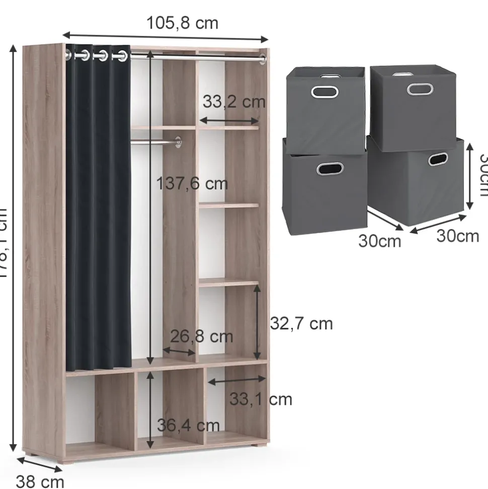 - LIEFERUMFANG: Kleiderschrank, Montageanleitung, Montagematerial, 4x Faltboxen.