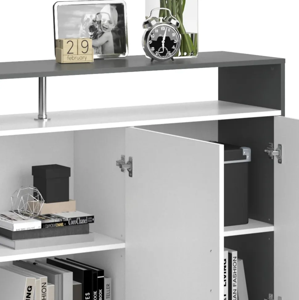 Das Sideboard Amato ist die perfekte Ergänzung für jedes Wohn- oder Schlafzimmer. Die Kombination aus Regal mit Türen und Kommode mit Türen sorgt für reichlich Stauraum, während das originelle Design dem Raum eine besondere Note verleiht. Die geschlossenen Fächer bieten Platz für all die Dinge, die man gerne aus dem Blickfeld verschwinden lassen möchte. Dank seiner schönen Optik und der vielseitigen Verwendungsmöglichkeiten ist dieses Modell ein echtes Highlight in der Amato-Reihe. Ob als Wohnzimmerschrank, Kommodenschrank oder einfach nur als stilvolle Aufbewahrungsmöglichkeit – dieses Sideboard macht immer eine gute Figur. Gönnen Sie sich den Luxus von zusätzlichem Stauraum und einem originellen Design mit dem Sideboard Amato!