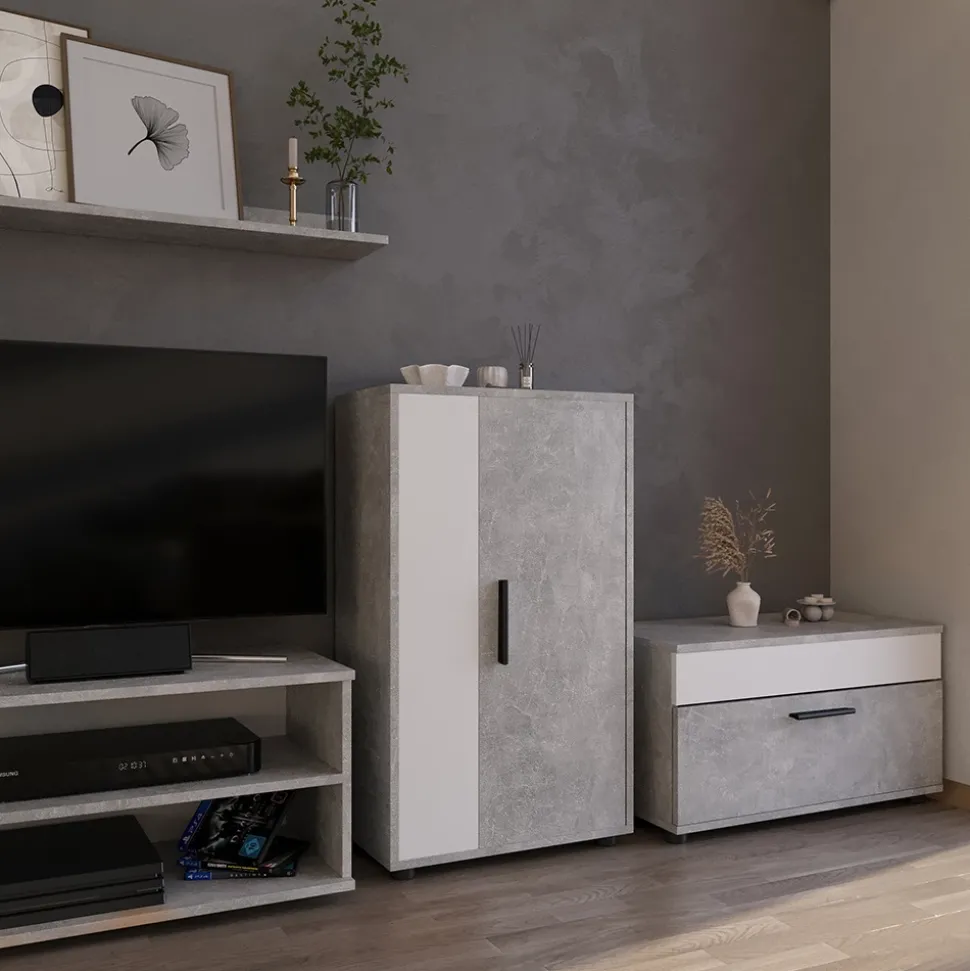 - MATERIAL: Der Aufbewahrungsschrank besteht aus einer pflegeleichten 16 mm Spanplatte, 16 mm. Der Griff und die Füße sind aus Kunststoff gefertigt.