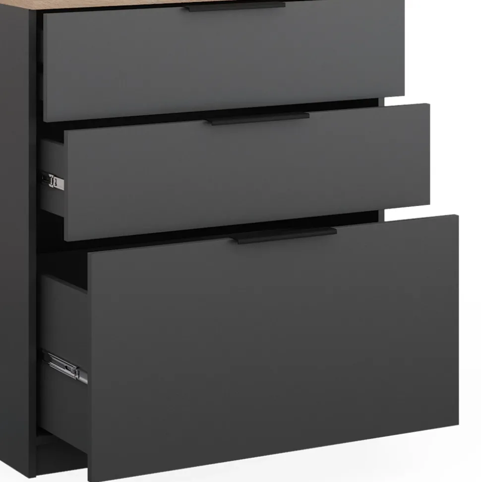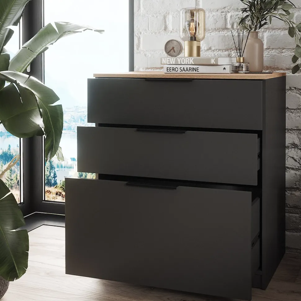 - Genießen Sie üppigen Stauraum durch 3 geräumige Schubfächer. Die Schubladenkommode vereint Eleganz und Funktion als ideales Sideboard oder Schlafzimmerkommode.