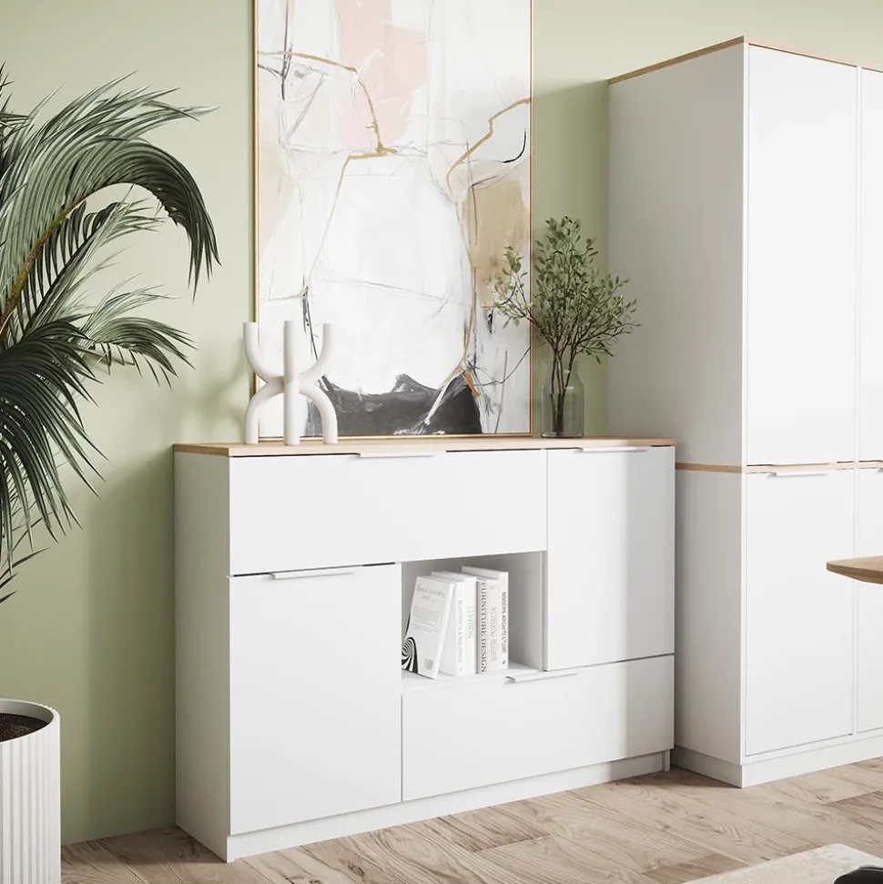 - Die Anrichte Betti ist die gute Entscheidung für jede Wohnung. Mit ihrem stilvollen Aussehen und dem universellen Design ist sie das perfekte Möbelstück für jeden Raum.